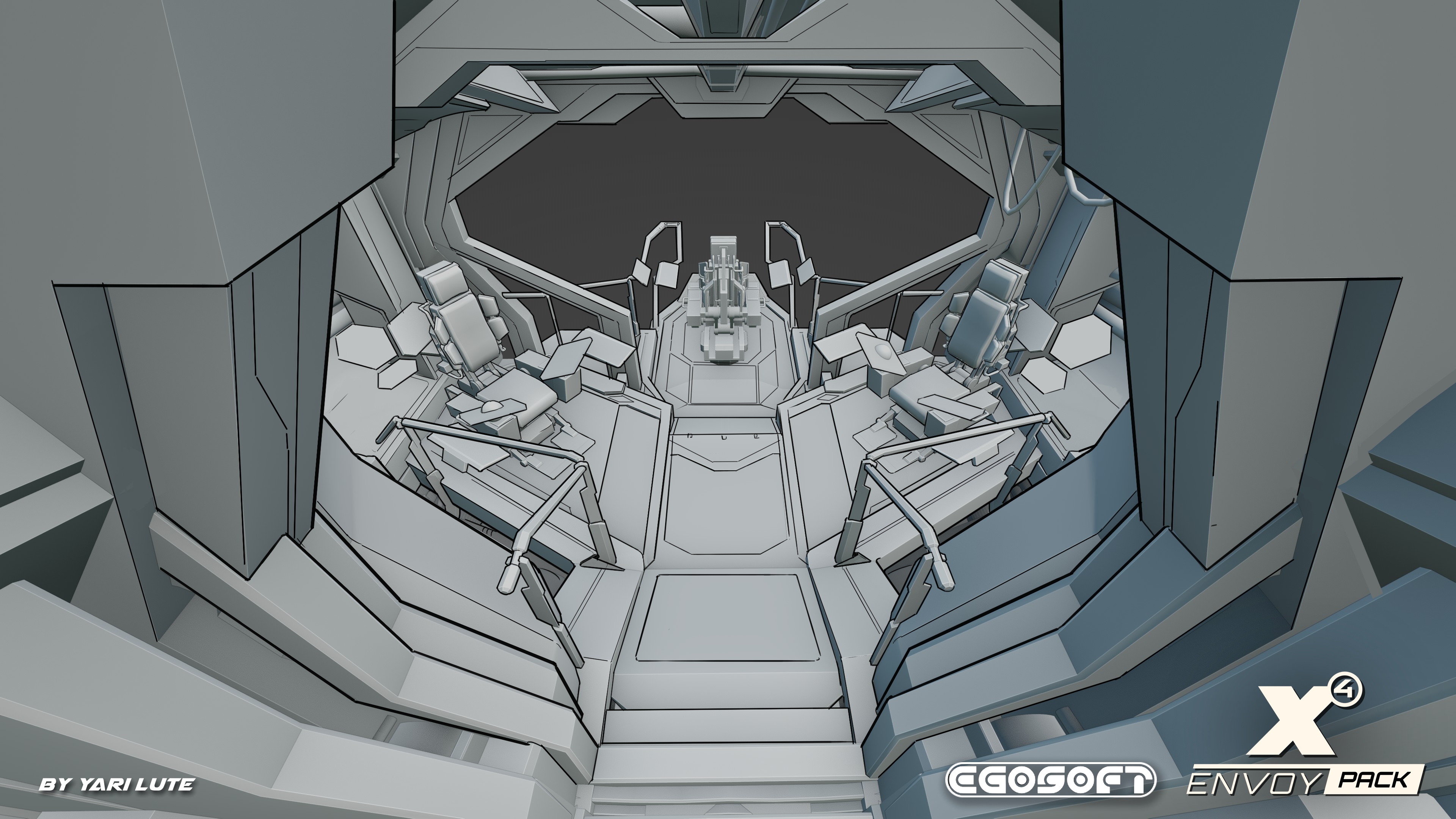 Behind the scenes, the interior design wasn't just about looks. The team had to reconcile the Envoy's angled, modular shapes with the game's internal grid system.