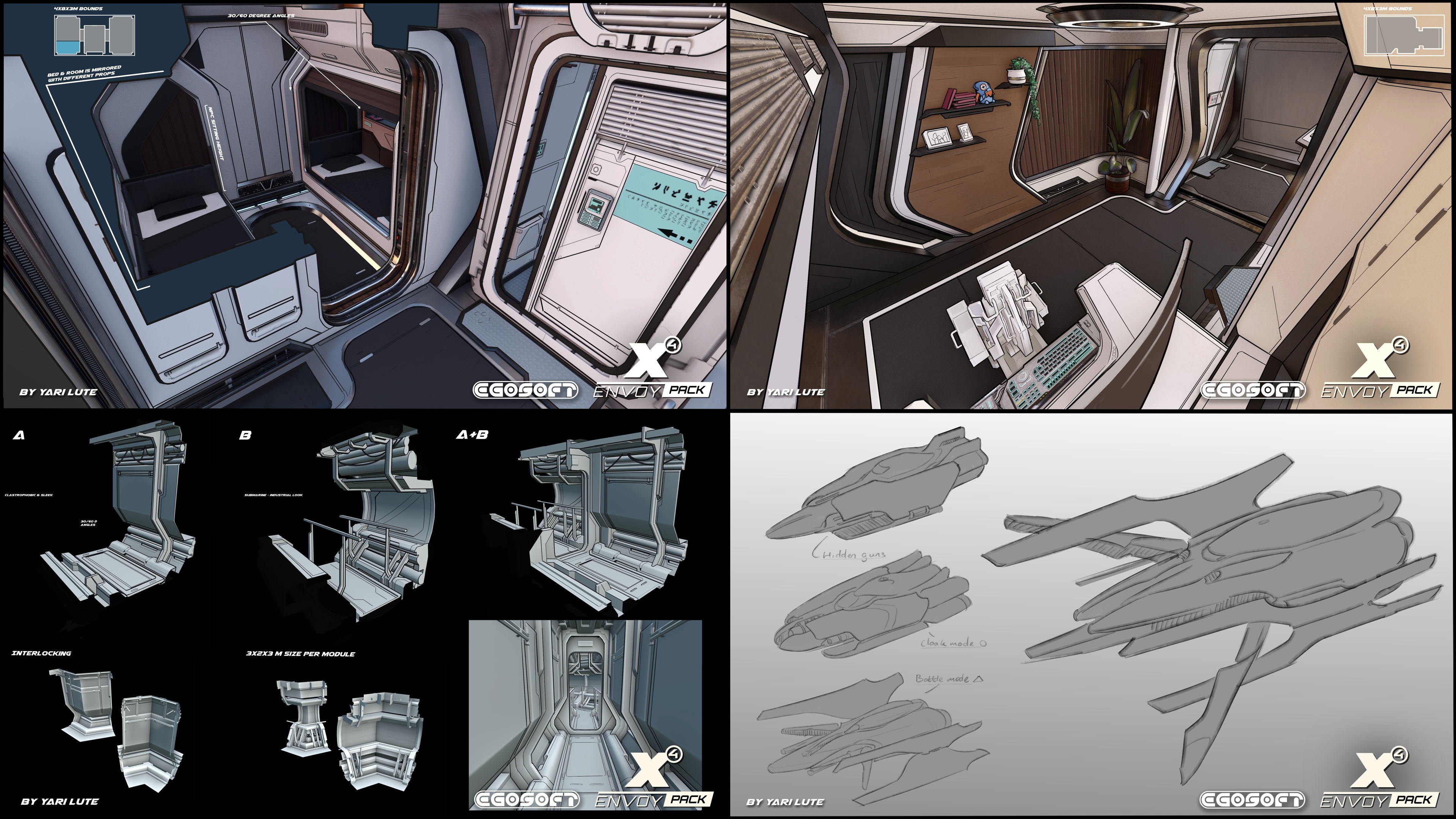 "The Envoy also pushed us further than before in terms of interior scale and complexity," adds Egosoft's Lead Artist, Lino. "We always try to raise the bar for what design can make people feel on board our ships."